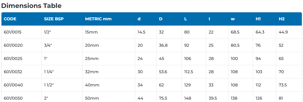 Available in 15mm, 20mm, 25mm, 32mm, 40mm and 50mm.