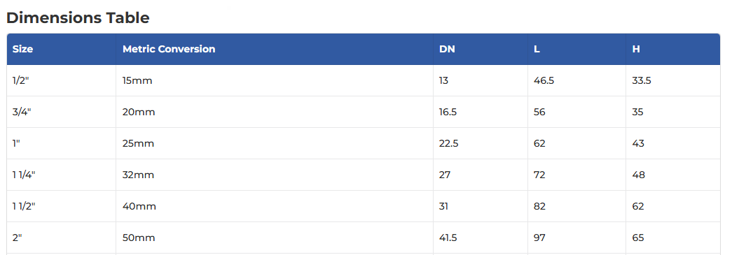 Available in 15mm, 20mm, 25mm, 32mm, 40mm and 50mm.