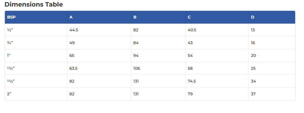 Available in 15mm,20mm,25mm 32mm, 40mm and 50mm